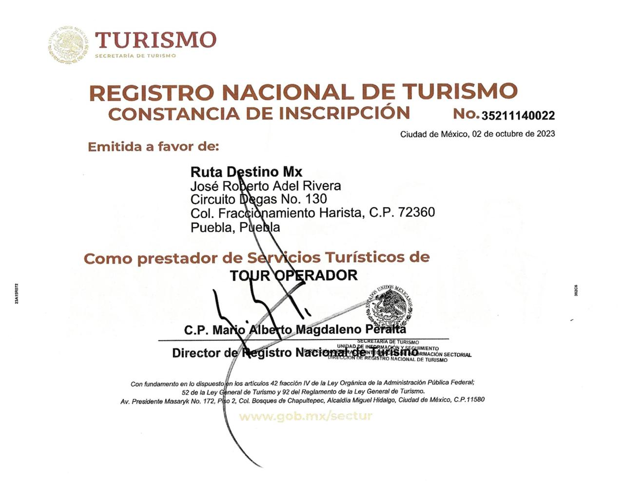 Para mayor seguridad, te invitamos a consultar nuestro registro ante la Secretaría de Turismo. Puedes hacerlo visitando el sitio web oficial de SECTUR y buscando Ruta Destino en la lista de agencias certificadas.